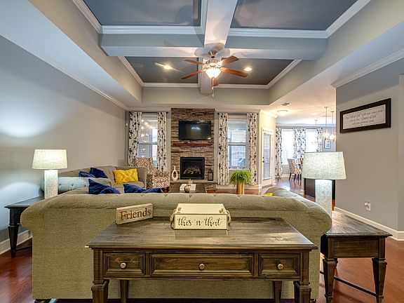 Beautiful, immaculate home with 2 bedrooms on main level, 2 bedrooms upstairs, stone fireplace and coffered ceiling, media room with projector screen and surround sound plus a bonus room. Need storage? This home has tons! Primary bedroom has two large walk in closets. Also, privacy fence with 18ft screened in patio, Ring camera, gas stove, tankless water heater and new HVAC in 7/21. All appliances stay. Access to Charlie Daniels Park and walking distance to the high school.