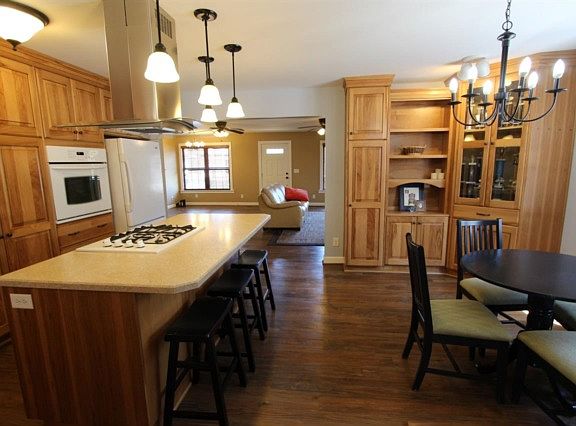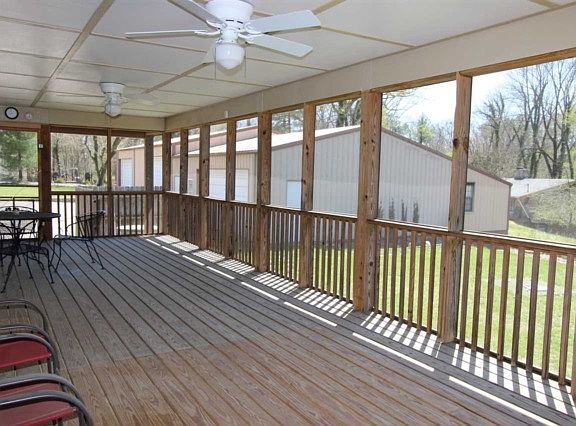 Absolutely adorable 3-bedroom 2-bath ranch will surprise you when you see inside, and outside you will be pleased with a generous screened porch and huge 4+ car pole barn with oversized doors for taller vehicles. The large open living room is done in pleasant colors for a cheery and inviting space for you and your guests, and there is also an adjoining dining area, allowing for a wonderful space for entertaining. The completely updated kitchen is just beautiful and features ample crown-topped floor-to-ceiling cabinetry, an island with seating, gas countertop range, wall oven, and a second dining area featuring two beautiful built-in corner hutches, cabinets and shelving for display and storage. The main-level master bedroom suite has access to the screened porch, a large walk-in closet and beautiful updated full bath with a large double-bowl vanity with large linen cabinet, and a huge glass walk-in shower with dual shower heads. There is an additional full bath on the main level which also includes the laundry room. In the walk-out lower level, you will find a spacious family room and 2 additional bedrooms. You will love the very special outdoors of this home with a screened porch stretching nearly the entire length of the back of the home and a 42' x 70' heated pole barn, with two furnaces, perfect for your boat or motor home. All this is sitting on over an acre lot, so you're sure to fall in love with this great property. Per seller: updated heating and air system is high efficiency.