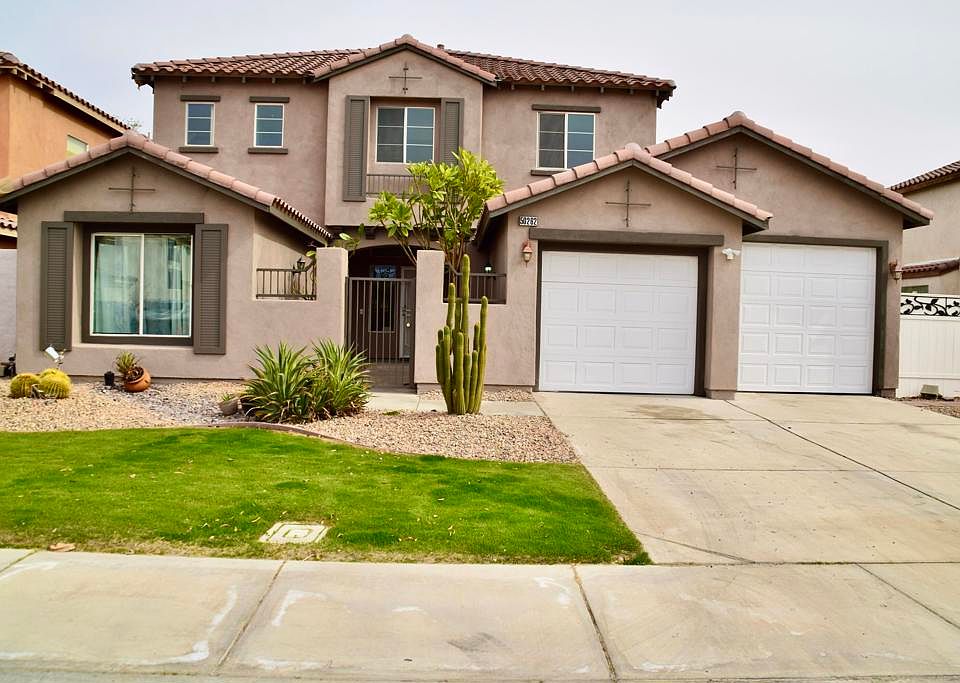 Opportunity Knocks!!! Two Story Home. 4-Bedrooms 31/2- Baths, 2-Car Garage, with 2395 SqFt. Built in 2004. Huge walk-in closet. Great Location. Within minutes from Polo Grounds and Coachella Music Festivals. Short Terms Rentals welcome!! Granite counters, stainless steel appliances, Bar sitting. Open and inviting floor plan. Backyard is big enough to build your own Pool & Spa. Did I mentioned it counts with a private guest House?? Price per square feet is about the lowest you can find in the whole city. The community of La Colonia is about the nicest family neighborhoods in Coachella. No HOA!! ! Don't let this opportunity pass you by.