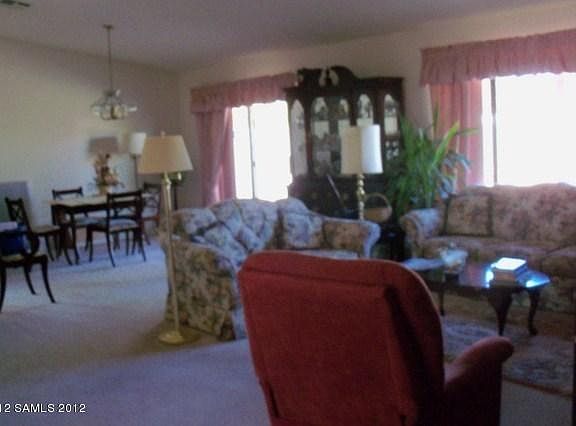 This immaculate 4 bedroom, 2 bath home, boasts nearly 2,000 sq ft. of living space. Built in 1994, the home is located in the tranquil community of the Snyder area subdivision, in Sierra Vista, AZ. This older neighborhood has a friendly, safe feel about it and is only minutes from downtown and Fry Blvd. It also is an easy car ride from Bisbee, Tombstone, Hereford, Ft. Huachuca, Benson, Patagonia, Sonoita and the Huachuca Mountains with many hiking, biking, and camping trails. This home is not bank owned and not a short sale. Sellers will include washer, dryer, refrigerator, stove, and microwave with an acceptable offer. Sewer and Trash included. One owner until became rental in 2012. Non-smoking. Mature backyard with trees, rose bushes, various flowering shrubs, bushes and a large fruit tree kept healthy with an automatic watering system.. Complimentary designed shed in the backyard with locking padlock. Side gate opens to accommodate large RV, trailer, etc. Covered back porch provides shade and privacy. Carpet throughout except for tile in the front foyer, kitchen and kitchen nook, guest bathroom and laundry room. Concrete floor in 2-car garage. Garage has custom build-in top-to-bottom shelving with doors. Soft water system and fast hot water system available to use.