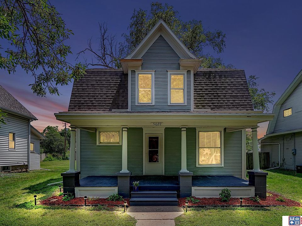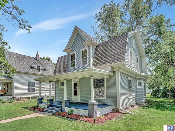 Welcome to this charming 1910 vintage home featuring classic original woodwork throughout & timeless pocket doors. Fresh interior paint sets a nice clean & crisp environment. The grand foyer welcomes you with stunning original wood wainscoting on the stairs. The main floor offers a spacious living room, elegant dining room, & an updated kitchen with newer cabinets, LVT flooring, & modern appliances. Upstairs, you'll find three large bedrooms, a convenient laundry room, & a beautifully redone bathroom with new flooring, vanity, tub & a tiled shower. Enjoy ample basement storage, a big front porch perfect for relaxing, & a large yard with alley access. Own this historic charmer with modern updates today!