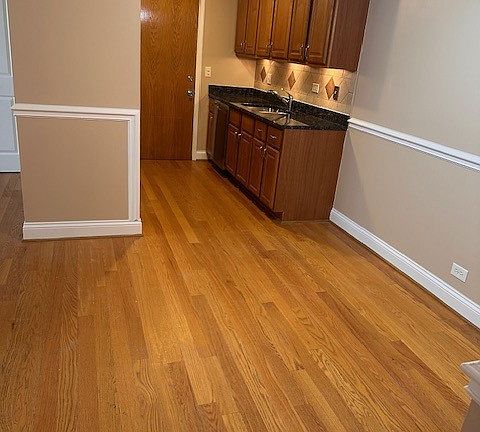 Updated 1 bedroom, 1 bath condo in the garden floor with stainless steel appliances and walk in closet. Everything is electric. Water included. Laundry onsite. No pets. $540 move in/move out fee. Close to O'Hare, public transportation, & forest preserve.