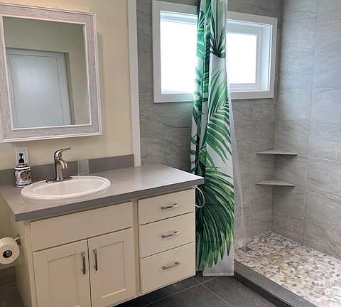 Fully renovated cottage in a convenient Kapa`a location close to Kealia Beach and walking path. Neat and clean as can be, this is basically a new ohana home with all new appliances, flooring, paint, and fixtures. Loads of cabinet and closet storage. Cooling tradewinds, ceiling fans, and lots of windows to catch the breezes keep the cottage cool and comfortable. Large bedroom with closet, and large bathroom with gorgeous shower. Open concept kitchen/living/dining area. Property has ample parking and lots of room for outdoor living on a huge corner lot. Plant a small vegetable or flower garden on the side yard. Lots of room to wash cars, store surfboards, water toys, etc. Owners live in front house and are looking for a responsible, quiet tenant who will enjoy the convenience and peace of this beautiful 1/1 cottage. Quiet, family neighborhood, too! $2200/mo rent, plus $100 toward utilities = $2300 total. One year lease is preferred, but willing to consider 6-month minimum. Absolutely NO DRUGS, VAPING, or SMOKING of any kind! Sorry, no pets. Maximum of two tenants since it is a single bedroom,