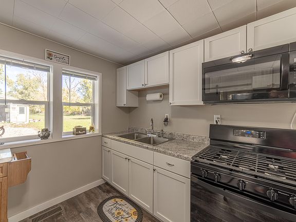 Nestled on over an acre of land just 10 miles from I-65, this charming home has been recently updated both inside and out! Enjoy updates such as new roof, siding, windows (complete with blinds), furnace, water heater, and well pump. The kitchen has also recently been updated with beautiful, white cabinetry and new kitchen appliances (that are only 1-year old and stay with the home!) Located off the back door is an adorable laundry mudroom combo. The second bedroom features a nice, walk-in closet. A charming foyer off the front door, graced by a stain-glass window, can serve as a delightful sunroom or additional mudroom/storage area. Plus, there is a detached 2-car garage for additional storage. Don't miss your chance to experience the tranquility of country life!
