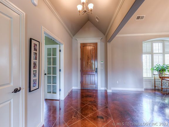 Stunning, immaculate two story home. Impressive open living area flows into the well appointed kitchen featuring soaring, vaulted and beamed ceilings. Gorgeous stained concrete floors. Main level master & guest suites, each with private baths. Huge laundry & pantry, both have sinks! Large upstairs bonus room along with 2 roomy beds and a bathroom. Beautiful covered back patio, wonderfully landscaped and perfect for relaxing, overlooking tranquil views to the beautiful pond and fountain.