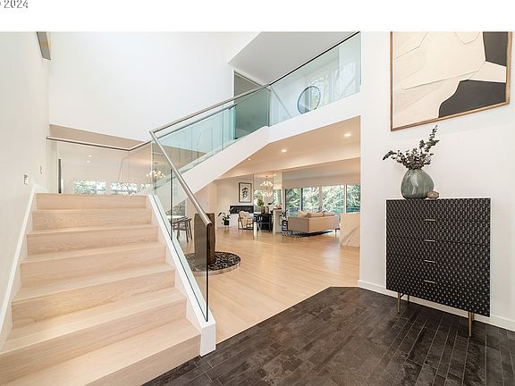 Stunning Dosch Estates home in Hillsdale! The expansive entrance welcomes you to a chic, wonderfully maintained home with an open floor plan complemented by soaring vaulted ceilings, cozy fireplaces, and beautiful tree filled views from every window. A spacious kitchen, perfect for entertaining, boasts marble waterfall countertops, top of the line stainless steel appliances and abundant custom storage throughout. The exquisite floating wrap-around staircase leads you to the over-sized primary suite with all the luxury you desire including: fireplace, sauna, jetted tub, custom built-ins, double closet, laundry, a private deck, elevator & spacious bonus room. On the main level enjoy the sound of the sculptural indoor fountain, or the tranquil oversized deck overlooking greenbelt. [Home Energy Score = 4. HES Report at https://rpt.greenbuildingregistry.com/hes/OR10032449]