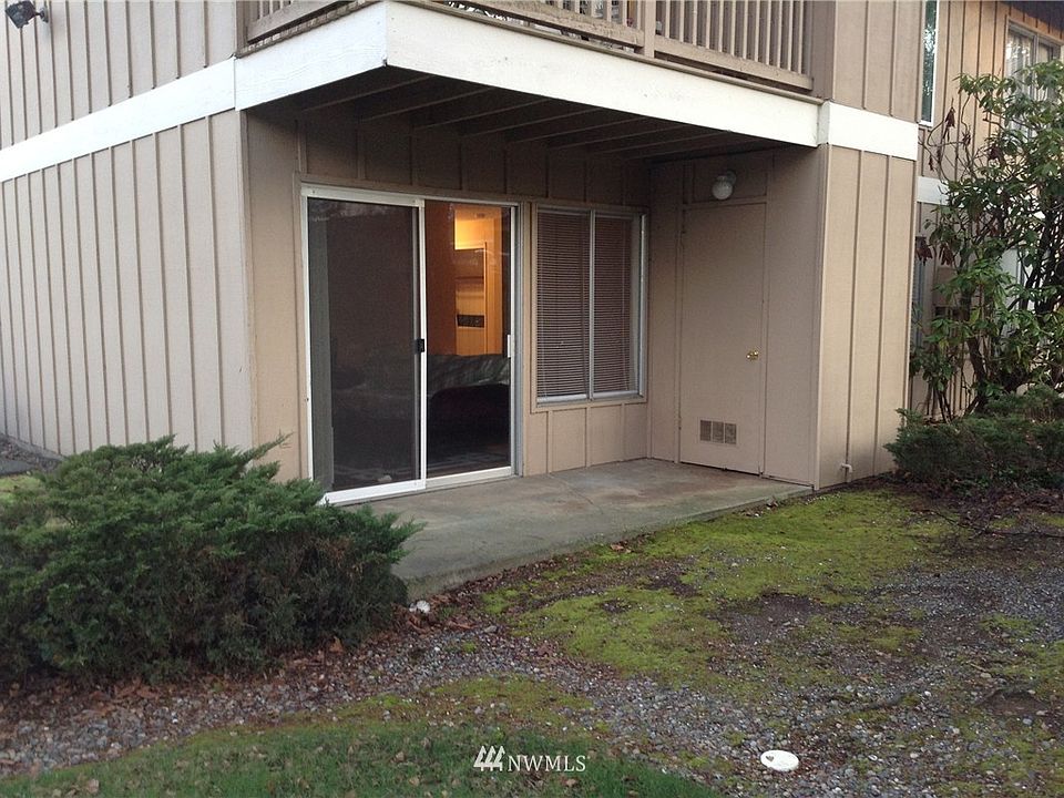 Spacious and affordable one bedroom condo in Mukilteo Village, ground floor, end unit with one parking space next to it. Laminate flooring, living room with slider to back patio which over look the out door pool and club house. Kitchen connect to dining room, in unit washer and dryer in the storage room, gas forced heat, low HOA dues includes water, sewer, all outside maintenance and electric. Convenience located to Boeing, ferry terminal, park and beach. No rental cap.