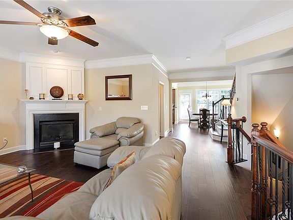 Absolutely stunning townhome in perfect Smyrna/Vinings location! Upgrades galore - wide plank hardwood floors in every room, plantation shutters, California closets in both upstairs bedrooms, barn door in basement, Nest thermostats! Chef's kitchen w/ granite counters & island & stainless appliances. Huge master bath has his & hers vanities, jetted garden tub w/ separate shower & huge walk-in closet. Full bath w/ terrace level bedroom & private patio. Has lots of privacy in back. Community pool, fenced dog play area & active HOA. Mins to downtown. Low Cobb taxes!