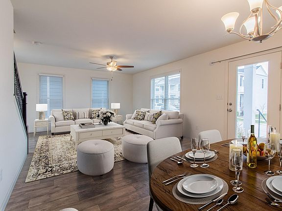 Meticulously maintained 3 bedroom 2.5 bath house in the highly desirable New Town community is waiting for new tenants to call it home. Enjoy a neighborhood filled with shopping, churches, restaurants, pools, lakes, playgrounds & MUCH MORE! Relax in the summer with movies, concerts, sand volleyball, and ice cream shops. Step inside this 2 year new home and take note of the open and spacious floor plan, luxury flooring, and abundance of natural light. The modern kitchen includes a spacious island, upgraded 42" cabinetry, stainless appliances, and a cozy half bath. On the upper level there is a large master suite with a full bath featuring a double sink and a walk-in closet. The upper level also has 2 additional bedrooms, a bonus family room space that walks out to the upper balcony, full bath, and a convenient upstairs laundry room with washer/dryer included. Only minutes away from downtown St. Charles Main Street; highway 370, 270 & 70. Hurry, this one won't last!