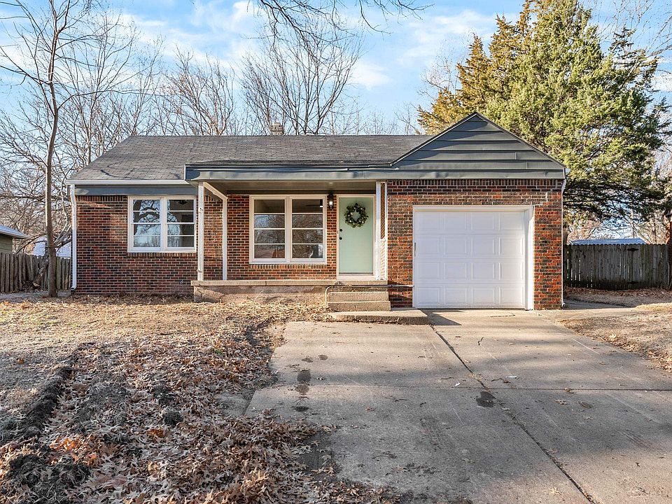 Welcome home to this fully-renovated 3 bed/2.5 bath/1 car ranch located in East Wichita. You may not be able to tell from the street, but this house is beyond spacious with about 1,800 square feet of finished living space to spread out. An abundance of natural light from all of the windows highlights the gorgeous blonde-colored wood flooring, fresh light neutral paint, and modern fixtures throughout the main level. The heart of this home lies in the extra-large kitchen, adorned with brand new white cabinetry with golden pulls, granite countertops, and stainless-steel appliances. Imagine gathering around the center island or in the spacious designated dining area, a perfect spot for hosting dinner parties or just enjoying family meals. Storage and counter space are abundant in this kitchen with a bonus area that would make an inviting breakfast nook with additional seating or even a cozy coffee bar. The primary bedroom, tucked away for privacy, features a double closet and boasts its own chic bathroom right outside the door with a fully-tiled stand-up shower and elegant gold fixtures, reminiscent of a designer magazine feature. In addition to the traditional main floor living room area, you will also find a versatile bonus sitting room, perfect for creating your ideal space - a home office or a cozy reading nook, perhaps. The other two main floor bedrooms conveniently share the second full bathroom on the main level, which matches the elegance throughout the home with its fully-tiled shower/tub surround with built-in shower accessory niche, matte black light fixtures/hardware and brand new vanity. Venturing downstairs, the expansive basement unveils a large family/rec room with new carpeting, ideal for hosting watch parties and movie nights or just unwinding after a long day. An additional non-conforming bedroom/bonus room with an updated ensuite bathroom and large closet provides yet another option for hosting guests or allowing for a designated hobby room. You will also find that there is storage space in the unfinished portion of the basement, so you will be able to house all of your seasonal belongings in their own place. Outside, the backyard has a vast concrete patio that stretches along the entire backside of the house, making it the perfect spot for summertime barbecues or outdoor gatherings. There is also a separate concrete pad near the back of the yard that is ready for your imagination - a firepit area, basketball court, or workshop space are just a few ideas for this extra amenity. A convenient outdoor shed complements the 1 car attached garage for all of your outdoor storage needs, while the double driveway provides ample off-street parking. Situated near McConnell Airforce Base, Spirit AeroSystems, and East Wichita's array of amenities, this home blends comfort, convenience, and elegance all into one perfect affordable package. Call us today to get you started on the journey to making this your new home!