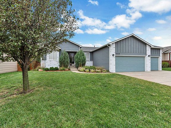 Welcome home to 5029 N Saker Circle! Tucked inside the highly sought-after Falcons Falls neighborhood, this beautifully maintained 5-bedroom, 3-bathroom home offers the perfect balance of comfort, functionality, and neighborhood charm. From the moment you arrive, you’ll be greeted by the inviting curb appeal and a spacious, landscaped yard that backs to a tranquil tree line, creating both privacy and beauty. Step inside to discover an open, split-bedroom floor plan filled with natural light. The living room showcases large windows, an electric fireplace, and two recessed niches for your personal touch. The kitchen and dining space feature durable tile flooring, stainless steel appliances, and easy flow for everyday living and entertaining. A main-floor laundry room with built-in shelving doubles as extra pantry space. The primary suite is a true retreat, offering two closets, a double vanity, and an oversized shower. Downstairs, the finished basement expands your living space with a large family room, two additional bedrooms, a full bath, and plenty of storage. Throughout the home, neutral décor and stylish lighting make it completely move-in ready. Enjoy evenings on the back deck, watching wildlife along the tree line, or spend time connecting with neighbors on the friendly cul-de-sac. Falcons Falls is known for its community amenities, including walking paths around stocked ponds and a neighborhood pool. With convenient highway access and proximity to Koch and all of Wichita’s best shopping and dining, this home offers an unbeatable lifestyle.