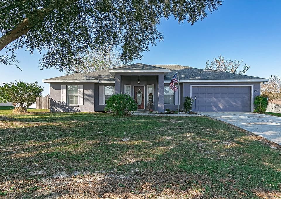 BEAUTIFUL OAK TREE IN FRONT YARD LEADS TO LARGE COVERED FRONT PORCH IN THIS OVERSIZED .34 OF AN ACRE CONCRETE BLOCK STUCCO HOME WITH FRESH COAT OF EXTERIOR PAINT 2021, LOT IS PRIVACY FENCED WITH DOUBLE GATE FOR EASY ACCESS AND EXTRA STORAGE OF TRAILERS ECT...ROOF REPLACED 2018 WITH 30 YEAR ARCHITECTURAL SHINGLES. HVAC(A/C) NEW IN 2020, ALL TILES FLOORS HOME HOME REPLACED 2019, BEDROOMS HAVE CARPET 2014, 2021 REFRIGERATOR AND 2022 DISHWASHER. FROM COVERED PORCH ENTER INTO TILE FLOOR HOME WITH FORMAL DINING TO RIGHT AND LIVING ROOM PERFECT FOR A OFFICE TO LEFT. THE HALLWAY LEADS TO OVERSIZED FAMILY ROOM WITH VAULTED CEILINGS. TO THE RIGHT OF THE LIVING IS KITCHEN WITH TILE COUNTERTOPS WITH PLENTY OF CABINET SPACE. THERE IS A BREAKFAST AREA INCLUDED IN THE KITCHEN AREA. OWNERS BEDROOM IS ONT HIS SIDE OF HOME AND IS PRIVATE AND SPACIOUS. OWNERS BATH HAS TILE FLOORS AND DOUBLE VANITY SINKS, SHOWER/TUB COMBO AND WALK IN CLOSET. ADDITIONAL 2 BEDROOMS AND SECOND BATH ON OPPOSITE SIDE OF HOME. OFF THE FAMILY ROOM IS DOUBLE FRENCH DOORS LEADING TO SCREENED AND COVERED BACK LANAI, THIS AREA LEADS THE LARGE BACK YARD. LAUNDRY AREA IS IN 2 CAR GARGE WITH SIDE ENTRY DOOR FOR ACCESS TO HOME. PLENTY OF ROOM FOR ALL ENJOYMENT. CURRENT OWNER HAD AN ABOVE GROUND POOL IN PLACE AND IS WILL TO LEAVE WITH THE SELL! SPRINKLER SYSTEM AND NO HOA..INCREDIBLE LOCATION NEAR NEW PUBLIX GROCERY STORE AND NEAR NEW SHOPS, PUBLIC LIBRARY AND MINUTES TO SR200!