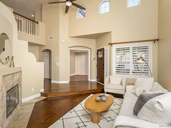 Discover exceptional living in this immaculately Ocean Terrace home, thoughtfully enhanced with high-end upgrades throughout. Experience the convenience of a main-level bedroom and bathroom, while dramatic soaring ceilings amplify the light and space. The primary suite offers a true sanctuary – featuring its own private balcony to soak in the mountain and canyon vistas, plus a luxurious en-suite bathroom with a stunning wrap-around fireplace. Your private oasis awaits in the expansive backyard, perfectly designed for entertaining and offering ultimate seclusion with no homes behind. Located within the desirable gated community of Ocean Terrace and a top-rated school district, this beautifully maintained residence is an incredible find in a great location. Oh, did I mention the peek-a-boo ocean views from two well-appointed bedrooms! Don't miss your chance – this home is a true must-see!