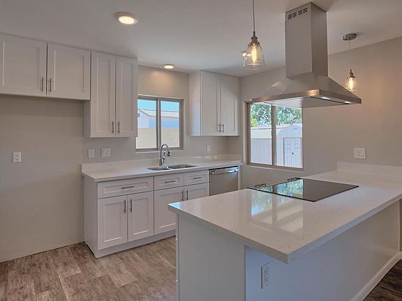 STUNNING CONTEMPORARY INTERIOR W 3 BEDROOM, TWO BATH SINGLE LEVEL with EXTENSIVE REMODELING: SO MANY UPGRADES, A MUST SEE! Entertainer's kitchen w open floor plan, breakfast nook and bar. New beautiful white Shaker wood cabinetry w soft close drawers, GE convection oven/range and dishwasher, gorgeous quartz counter tops. New dry wall, wood tile flooring and carpet throughout. Fresh interior soft grey paint w white baseboards. Bathrooms w new quartz counters. tub, sinks, and hardware. Energy efficient low E dual pane windows, ceiling fan in the master bdrm Inside laundry rm w/cabinets. Backyard with covered patio is a blank slate waiting for your design. Recent new roof and hot water heater w passive solar assist. Great convenient Glendale location in a quiet neighborhood, close to the 101