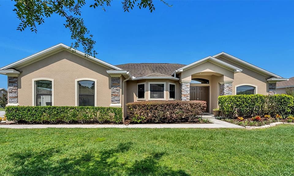 Welcome to this beautiful 3 bedroom, 2 bathroom home with an additional office/flex room that offers both comfort and style. Situated on a corner lot, this property boasts a spacious and privacy-fenced back yard, providing a serene retreat for you and your family. The double front entryway doors make a grand impression as you step inside. The kitchen is a chef's dream, featuring recessed lighting and newer stainless steel appliances. The dinette area offers a lovely view of the front yard, perfect for enjoying your morning coffee. The large living room is adorned with vaulted ceilings, a ceiling fan, and recessed lighting. Additionally, you'll find an electrical outlet conveniently located in the floor. Sliding glass doors lead to the oversized screened-in patio, ideal for entertaining guests or simply enjoying the outdoors. Adjacent to the front foyer area, there is an office space, separated by double doors. This versatile room can be used as a home office, study, or even a guest room, providing flexibility to suit your needs. The thoughtfully designed split bedroom floor plan ensures privacy and convenience. The master bedroom features a ceiling fan and an en-suite master bathroom. The bathroom boasts a tiled shower with a glass door, a relaxing garden tub, and a dual sink vanity. Furthermore, two walk-in closets offer ample storage space for all your belongings. The additional two bedrooms are located on the opposite side of the home, sharing a guest bathroom. This layout is perfect for families or hosting guests, providing everyone with their own space. The water heater is brand new and ready to heat your water, installed in June 2023. Conveniently located near access to I4 and the Polk Parkway, this home offers easy commuting options. You'll also find a variety of dining and shopping venues nearby, while being close in proximity to local business offices such as Geico and Publix Corporate. Don't miss the opportunity to make this stunning property your new home. Experience the perfect blend of comfort, functionality, and style in this well-appointed 3 bedroom, 2 bathroom home with an office. Contact us today to schedule a viewing and see all that this fantastic property has to offer!