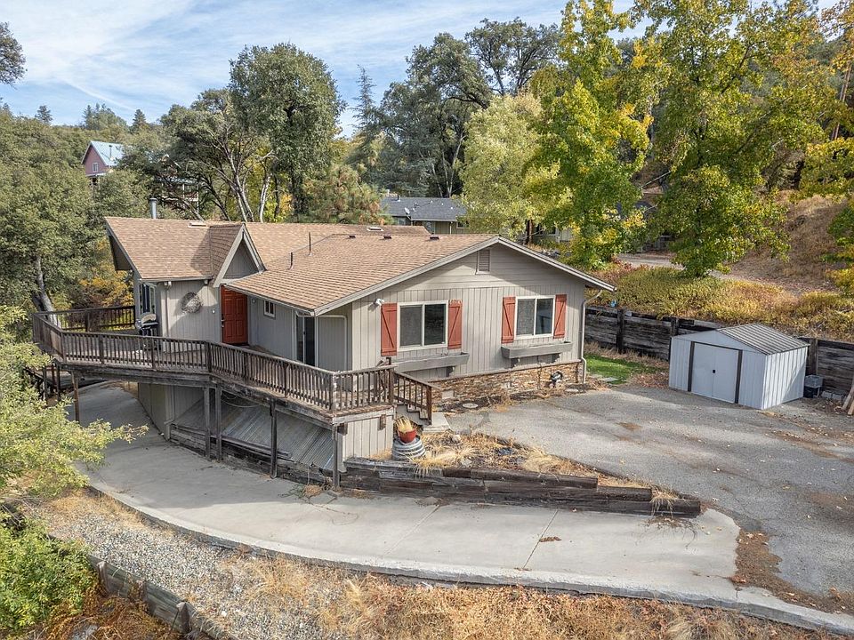 Welcome to your serene oasis! This charming home boasts an incredible location with Nelder Creek gracefully running through the backyard, complete with cascading waterfalls viewed from your private observation deck. Situated near Bass Lake and just 13 miles from Yosemite National Park, this mostly furnished gem features 2 generously sized bedrooms, 1 full bathroom, and a convenient half bathroom. The spacious open kitchen and dining area, along with an in-house laundry room, offer comfortable living. Enjoy the beautiful laminate flooring in the living room, complemented by a free-standing wood-burning fireplace and vaulted knotty pine wood beam ceiling. Triple pane windows and modern heating and air conditioning ensure year-round comfort. Ample driveway parking available. Don't miss this unique opportunity to own a slice of paradise! Schedule your showings today!