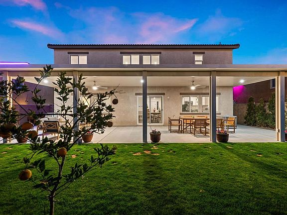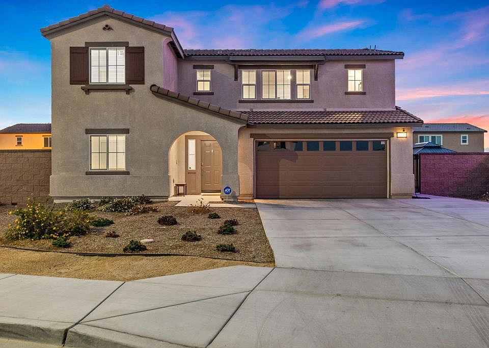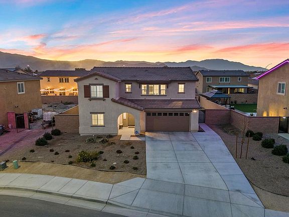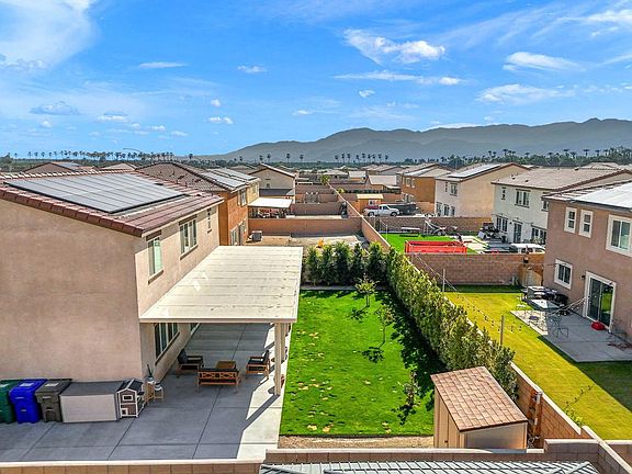 Nestled in the prestigious Mariposa Pointe community, this stunning 2,239 sq. ft. home seamlessly blends modern elegance with thoughtful design. With paid solar and high-end amenities, it offers ultimate comfort and convenience. The expanded driveway leads to a charming covered porch, welcoming you into a meticulously maintained home. Inside, an expansive Great Room is bathed in natural light, enhancing the open-concept design. A first-floor guest bedroom provides privacy and accessibility for visitors. The chef's kitchen boasts stylish white cabinetry, granite countertops, a spacious island, and premium stainless-steel appliances, flowing into the dining area--perfect for entertaining. Upstairs, an oversized loft serves as an ideal space for movie nights, studying, or unwinding. The luxurious Primary Suite offers a spa-inspired bath with an oversized shower, dual-sink vanity, and walk-in closet. Additional spacious bedrooms and a dedicated laundry room add functionality. Outside, enjoy an expansive backyard with a new patio, lush grass, and growing hedges for privacy, plus A dedicated dog area ensures that even your four-legged family members have their own space.. Smart home features include America's Smart Home Technology, LED recessed lighting, and a tankless water heater. Short-term rental-friendly and minutes from Coachella and Stagecoach, this home is priced to sell. Schedule your private tour today!