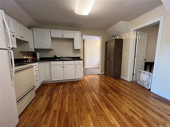 Nice 2 bedroom upper unit with off street parking and access to 1 garage space. Unit features many recent updates, has beautiful hardwood floors and in unit washer/dryer included. Tenant is responsible for all utilities and shared responsibility with other unit for lawn/snow.