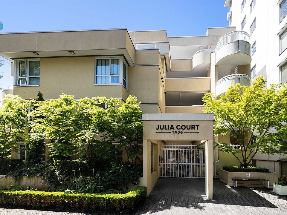 Gorgeous Sub-penthouse at sought-after Julia Court! Live Your Luxury in this boutique, concrete, rain screened building located steps to Sunset Beach in the West End of Vancouver. Enjoy fabulous water views from every window and the two large balconies of this suite which spans the entire south side of the sub-penthouse level. This beautifully updated 2 bedroom suite features a chefs kitchen with high-end appliances, wide plank hardwood flooring, and a spacious spa inspired bathroom w/ soaker tub, heated floor, double sinks, and stunning tile work. Julia Court boasts a proactive strata and many longterm owners. Comes with one parking with EV charger and one storage locker. Pets(2) allowed. A special offering in an incredible West End location!
