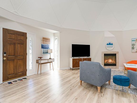 Don't miss the opportunity to be the next owner of this amazing home. This home has been tastefully updated throughout. Upon entering you will be greeted by soaring ceilings giving the area an airy and spacious feel. The living room, equipped with a fireplace, offers a cozy space for gatherings. The dining area and kitchen with granite counters, backsplash, and ample storage add to the overall appeal. The utility room on the main level, which houses the washer and dryer, adds practicality. The inclusion of a full bathroom on this level, along with a home office/bedroom, enhances the home's functionality. The second floor features a spacious primary bedroom with dual closets, an adjacent bathroom and an additional bedroom. On the top floor, the skylight adds a touch of natural light, and two more bedrooms with dedicated closets and full bath provide ample living space. New LVP flooring is throughout the common areas this home is move-in ready. The backyard offers a large deck that leads to the custom inground pool w/hot tub & tanning ledge an attractive feature, providing space for entertainment or relaxation. The homes proximity to the beach, park and all the great things to do on Main Street is only a few blocks away, making this a great coastal location. The geodesic dome structure offers a 30% increase in efficiency compared to conventional homes. This is a significant feature for buyers looking to reduce their energy footprint. Another great feature is the construction's ability to withstand hurricanes, earthquakes, and tornadoes due to the properties design.