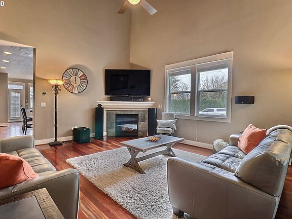 Charming 2006 Traditional in Oregon City. Enter to soaring ceilings & gleaming Brazilian cherry wood flooring. Gas fireplace in light filled living. High end kitchen features granite counters, gas range & spacious pantry. Access to deck from dining. Master suite on main w walk-in closet. Soaking tub in master bath. 2 generous spare beds up, both featuring walk-in closets & shared bath. Deck leads to oversized 2 car garage w Large RV parking. Fenced yard & covered front porch.