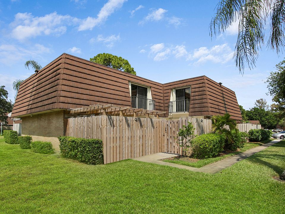 Lovely townhome in the popular neighborhood Garden Lakes right in the heart of Palm Beach Gardens - close to shopping, restaurants, schools and beaches! Walking distance to beautiful District park to enjoy biking, jogging, tennis, etc. Move-in ready 2 bedroom unit with a 1st floor Den/3rd bedroom! Tons of upgrades including an Updated kitchen with silestone counters and stainless steel appliances, a newer AC, living room fireplace, gorgeous wood plank tile throughout 1st floor & bamboo flooring upstairs. Roof was completed in 2019. Call us for a private and safe tour today & start enjoying your private, fenced, outdoor patio.