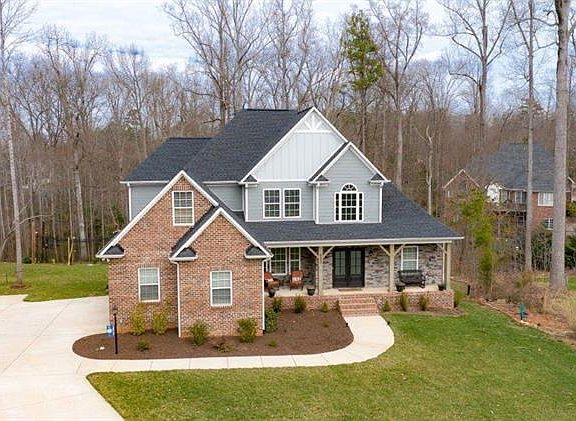 Beautiful 4BR 3.5BA on almost an acre in great neighborhood on cul-de-sac. Hardwood floors throughout main floor, open floor concept, formal dining room, cathedral ceilings, stone fireplace in family room. Kitchen is very spacious with breakfast nook, island bar for sitting, granite counter tops, stone back splash and stainless steel appliances. Barn door in kitchen leads to another cozy living area. Large master bedroom and master bathroom that has granite counter tops, tiled shower, jetted hot tub and large walk in closet. Three bedrooms upstairs with carpet and full bath with tile floors and granite counter tops. Finished walkout basement with full bath including custom tile shower . Two car garage with plenty of room for storage. Back deck wraps along the back of the house and offers beautiful view of private backyard and fire pit.