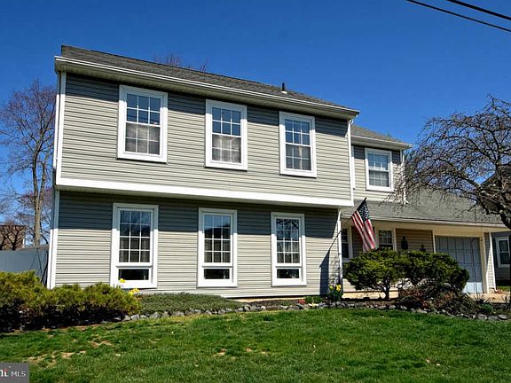 You will immediately feel welcomed as you drive up to this three bedroom Colonial style home nestled on a landscaped property in the desired Heddington neighborhood of Fairless Hills. As you enter the blue stone foyer you will appreciate the flexible open floor plan the home offers. The front room can be used as a formal living room or dining room which boasts three large windows providing lots of natural light, ceramic tile floor with the look of hardwood and crown & wainscot molding, A huge kitchen extends across the back of the home and opens to a family room/formal dining room with brick, wood burning fireplace & wood mantel. Kitchen features the same ceramic tile floor which flows from the front room, lots of counter space & white cabinets, wide counter allowing for seating, a breakfast room and recessed lighting. The first floor continues to a large sun room/family room with hardwood floors, vaulted wood ceiling with recessed light & ceiling fan, light & bright with lots of windows and access to the backyard, patio & pool. Completing the first floor is the laundry with side by side machines and access to the single car garage. Upstairs opens to a large foyer area boasting detailed hardwood floors, crown wainscot molding and divided light double doors opening to the balcony & back staircase to the yard & pool. Two of the three bedroom are en-suite with full bathrooms. One bathroom features a tub/shower combination the second has free standing jetted tub & tiled stall shower. Second bathroom has hall access to support the 3rd bedroom. The living space extends outside during warmer months to an in-ground tiled pool with concrete patio apron surrounded by landscaping with shed & fencing. Home is conveniently located to major roads, shopping, schools & parks. Don't miss this opportunity. Home is being offered "as is". Come tour when the crisis is over and make it yours.