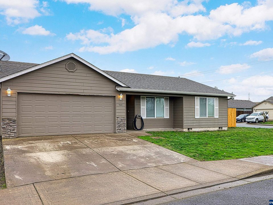 This single level, open concept home provides plenty of space for all. Tons of storage throughout. With three bedrooms on a corner lot , you wont want to miss this one! New dishwasher, fresh interior paint, and vinyl windows. Two car garage has built in storage and work bench for all home projects. Nice sized fully fenced back yard with endless landscaping possibilities. See private remarks