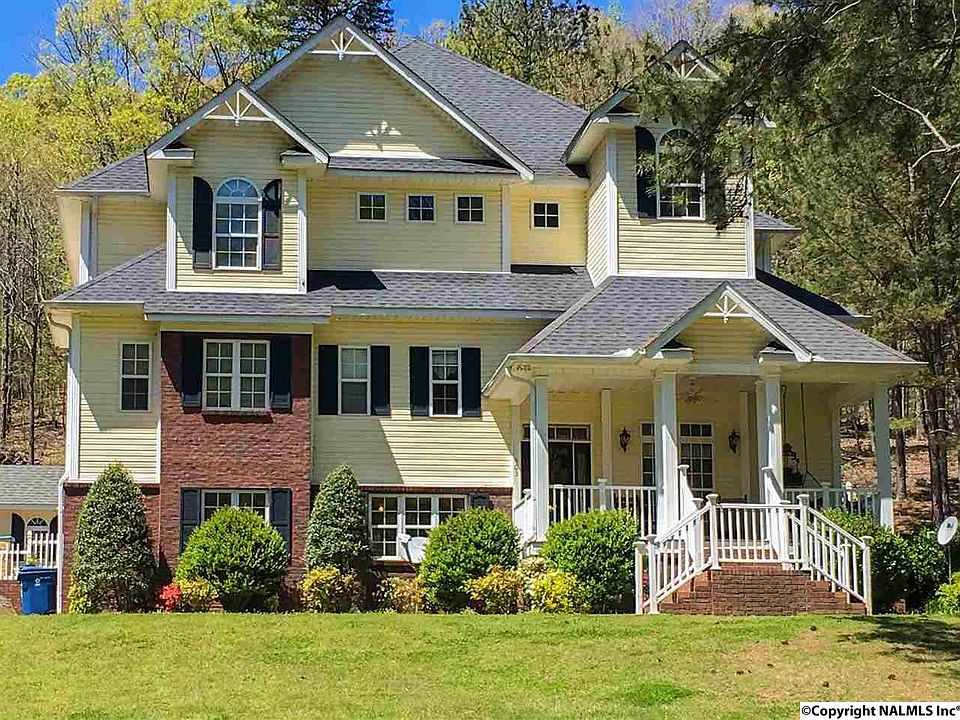 Gorgeous 5 bedroom home near Lake Guntersville at the base of Grant Mountain. Very well maintained property has a souring ceiling in the great room as well as a gas log fireplace, hardwood floors, and double french doors overlooking the in ground pool and the outdoor kitchen area complete with tiki bar, prep sink, and built in gas and charcoal smoker grills. The kitchen has ample custom cabinet space, granite counter tops, and a bar area. Master suite is relaxing with hardwoods, plenty of natural lighting, and a large glamour bath with walk-in closets. Each upstairs bedroom has its own full bath and a balcony overlooking the pool area. Full mother-in-law suite in the basement.
