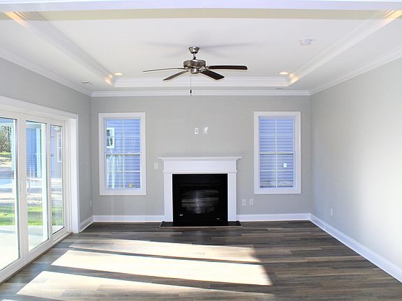 This Live Oak, one of our best-sellers has more incredible features! The open plan includes a spacious living room with gas fireplace, and 4 panel glass sliders to the huge covered rear porch & patio. You'll love the kitchen with abundance of cabinets, countertops, pantry, built-in desk, center island, & sink overlooking the backyard, plus a roomy breakfast nook. Rich wood tread stairs lead to the generous & inviting master suite offering trey ceiling, 2 WIC's, double vanity, & large tiled shower. 3 additional BR's, 2 with WIC's, & full laundry room with cabinets complete upstairs. Add'l features include covered front porch, black tin roof accents,