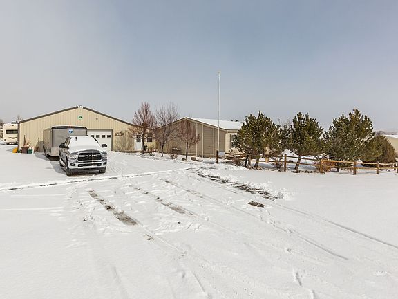 This property will tick so many boxes. The home is well maintained with upgraded countertops in the kitchen over wood cabinetry. Plenty of extra cabinet storage in the laundry/muck room. There is a large dining/living off the kitchen with a built in office desk area. On the other side off the front door another sitting/living room. On one side of this home is the large owner bedroom approx. 16x16 with it's ensuite and walk in closet. The other side has 2 guest bedrooms and a full bathroom. All with laminate flooring. Outside this home there is so much to offer. Sweeping view of the valley and mountains. Framed by landscaping that's set up for ease of maintenance. There is a large shop with a drive through door. Inside the main shop is an insulated "man room". Attached to the main house by a doored off breezeway which doubles as a covered and protected patio area over the back fenced in lawn area. The back of the main shop has 2 garage areas, one with a door, one open(door on site in other workshop) The Rock/Garden shed is attached on the fenced in lawn/garden side and makes for great additional storage/entertaining area.