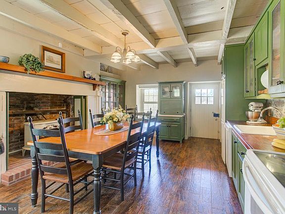 Neat 1810 farm house that has been updated & remodeled. This updated home sits on 3.59 acres w/ detached garage & 3 sheds. Fenced in yard. 4 BR, 1.5 baths, beautiful wood floors & large eat in kitchen w/ walk in FP. Large 3rd FL BR currently being used as office. Neat Pond in front of the home with a clay bottom. All BR are good sized many rooms have FPS