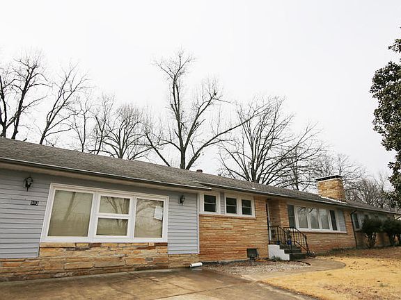 RANCH HOME 9 Rooms, 4/5 bedrooms, 3 full baths (one walk in shower), big laundry area, kitchen features cabinets on 4 walls plus snack bar and dining area, 15x25 living room with fireplace, central heat & air, plus a pellet stove for back up heat or will heat most of home. Home is ideal for multi-family use for members needing to be cared for. The 200x150 lot that adjoins a 200 acre farm in back so it is almost like county living, plus the large oak shades will provide a good place for outside entertainment. The 13x25 2-story shop plus 12x25 attached shed provides storage for equipment. The current owner has a VA loan on the property. If you need a lot of living space then check this out @ $115,000.