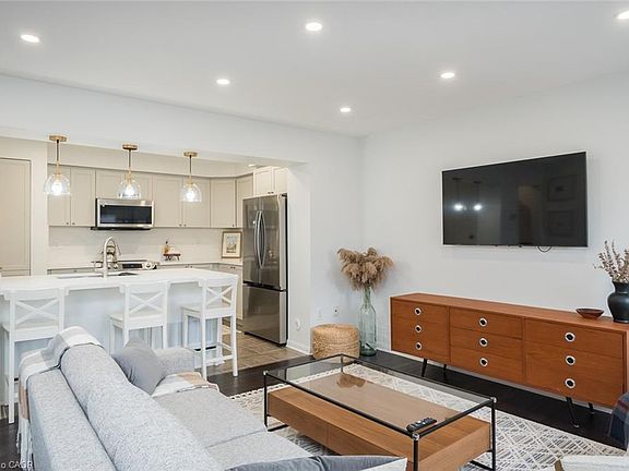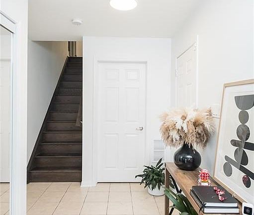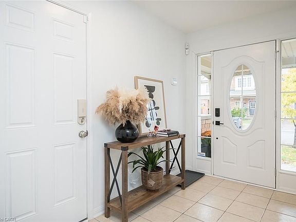 Freehold townhome renovated top to bottom with a chic, timeless aesthetic and a completely move-in-ready feel. The stunning renovated kitchen features cream cabinetry with sophisticated brass hardware, quartz countertops, pot lights, smooth ceilings, and a large island with ample seating which seamlessly connects to the dining area with double doors opening to a private balcony. Hardwood flooring flows through the main level and staircase, setting an elevated tone throughout. The upper level features a spacious primary bedroom with a walk-in closet and a four-piece bath with ensuite privilege along with a convenient upper-level laundry room. The ground floor offers interior access to the garage, a large foyer with a double-door closet, and a separate storage room. Ideally located close to top-rated schools, parks, and major commuter routes, this home is a perfect turnkey choice for first-time buyers or those looking to downsize without compromise.