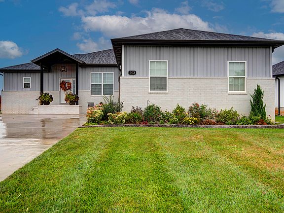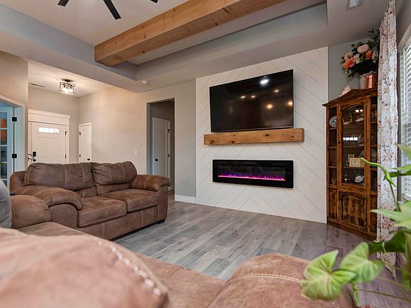 Better than new! This stunning 1-year-old, 4-bedroom home in the sought-after Rogersville School District offers all the upgrades without the wait. Perfectly positioned on a corner lot in the established Lakewood Estates neighborhood, the home enjoys the unique benefit of two cul-de-sacs--an ideal setting for walking, biking, and safe family play. Inside, you'll find a bright, open floor plan with a desirable split-bedroom layout. All hard-surface flooring includes luxury vinyl plank throughout the main living areas and bedrooms, with sleek tile in the baths and laundry. The living room makes a statement with its shiplap accent wall, modern electric fireplace, raised ceilings, and striking wood beams. The kitchen is equally impressive, featuring a spacious island, pantry w/wood shelving, custom white cabinetry with glass accents, under-cabinet lighting, a farmhouse sink, stainless steel appliances including a gas range with pot-filler, and the refrigerator stays. The dining room adds charm with its elegant wood wainscoting. The large primary suite is a true retreat, offering a luxurious soaking tub, separate shower, and walk-in closet. Each bedroom is enhanced with sleek modern ceiling fans, blending comfort with style. Additional highlights include an oversized side-entry two-car garage, a covered back porch with decorative concrete and iron railing, a fully fenced backyard with privacy fencing, and an irrigation system with custom landscaping beds. The home is also equipped with an ADT security system, distinctive lighting, and filled with natural light from abundant windows already outfitted with blinds--saving the buyer one of the most common move-in expenses. With its thoughtful design, stylish finishes, and move-in ready condition, this home truly offers the perfect blend of comfort, convenience, and sophistication. 100% USDA financing available for qualified Buyers. Call today for your private showing!