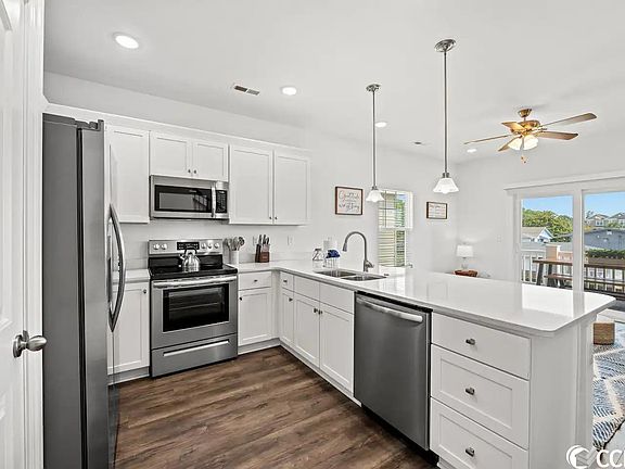 Experience the ultimate beachside getaway at this exceptional 4-bedroom vacation rental nestled in the vibrant heart of Myrtle Beach. Just steps from the glistening sands and rhythmic waves of the Atlantic Ocean. This inviting retreat promises an unforgettable coastal escape for families or groups seeking sun, fun, and relaxation. As you enter, be captivated by the bright and airy open-concept living space adorned with coastal-inspired decor and ample natural light. The living room invites relaxation with plush furnishings and a smart TV, perfect for unwinding after a day of beach activities. The adjacent gourmet kitchen features modern appliances, sleek countertops, and a breakfast bar for delightful culinary experiences. The four bedrooms offer restful sanctuaries for guests, each thoughtfully furnished for comfort and tranquility. The two master suites boast a king-sized bed, and en-suite bathroom,. The additional bedrooms provide flexibility with various bedding configurations to suit your group's needs. Convenience is key with amenities including high-speed internet, laundry facilities, and ample parking. With its prime location in the heart of Myrtle Beach, you're within easy reach of the area's top attractions, dining hotspots, and entertainment options. Enjoy the bustling boardwalk, explore local shops, or indulge in the renowned seafood restaurants - all just moments away.