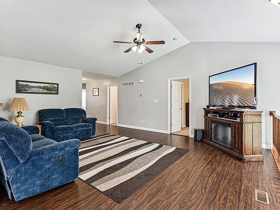 Welcome to your new home! This Pristine Atrium Ranch, 3 Bedroom, 2 Bath home has a lot to offer. Lots of natural light with views of the back yard backing to full trees. The great room has an open concept with vaulted ceilings leading into kitchen with glazed maple cabinets, roll out shelves in cabinets, refrigerator stays with home. Enjoy gatherings in this large breakfast room area. Main level washer/dryer stays with home. The front bedroom has a bay window. 3rd bedroom has a closet professional organizer. The primary bedroom has a large walk-in closet. The primary bathroom has 2 sinks, and a large shower. Full unfinished 9ft foundation, with rough-in, waiting for you to finish. Basement w/ walk out to an extra-large concrete patio to enjoy the level yard that backs to trees. NEW HVAC, NEW ROOF 2024. A community pool and playground. Great location close to Civic Park & Alligator creek Aquatic center. This home is move in ready and waiting for you to make memories!