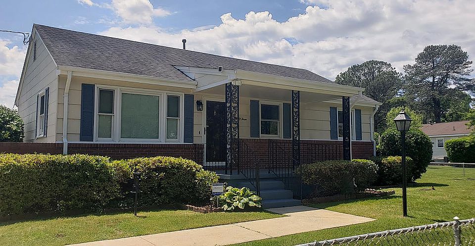 Welcome home to 503 Delham Rd, Portsmouth, Va. Move in ready, updated, 3 bedroom 1 bath, traditional ranch style home with 1.5 detached car garage. Easy access to interstates 264, 64, 664. Home has been lovingly maintained throughout the years. Established lawn and mature azaleas/shrubs greet you with awesome curb appeal. Large covered, relaxing front porch. Beautiful, newly refinished hardwood floors throughout. The upgraded swirled plaster ceiling and picture window enhances the cozy living room. Eat in kitchen includes newly painted white cabinets, new stainless steel refrigerator with ice maker, new stainless steel stove, new range hood and new microwave. New stylish deep sink, new faucet and new ceiling fan. Includes washer and electric dryer. Bathroom tastefully updated with new white vanity/faucet, medicine cabinet, light fixture, and shiplap with floating shelves. All 3 bedrooms and hallway have stunning hardwood floors and bedrooms have new ceiling fans. Wood shelves in closets. Interior freshly painted. Alarm system and new exterior light fixtures. Outside you will find a fenced in front yard and a 6’fence in the backyard for the fur kids. HVAC replaced in 2020. Buyers agent protected 3%