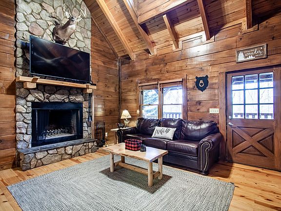 ENJOY THE PEACEFUL SIDE OF THE SMOKIES IN THIS BEAUTIFUL CABIN IN TOWNSEND! 3BD/3BA Enjoy the gorgeous mountain views in the winter and serene scenery from your front porch. This log home has cathedral ceilings and a floor to ceiling stack stone fireplace! Kitchen has all new stainless steel appliances. Open loft overlooks main living area. Large bedroom and bath with cathedral and beamed ceilings. Bonus room downstairs easily doubles as separate living space. Basement is equipped with private movie room. New LVP in basement, updated bathroom in basement. Updated furniture throughout. Large Back porch. Hot tub on back patio. New heat and air in basement. Gorgeous landscaping and easy in out access with circular driveway. DO NOT LET THIS ONE GET AWAY! CALL TODAY FOR YOUR PRIVATE SHOWING!