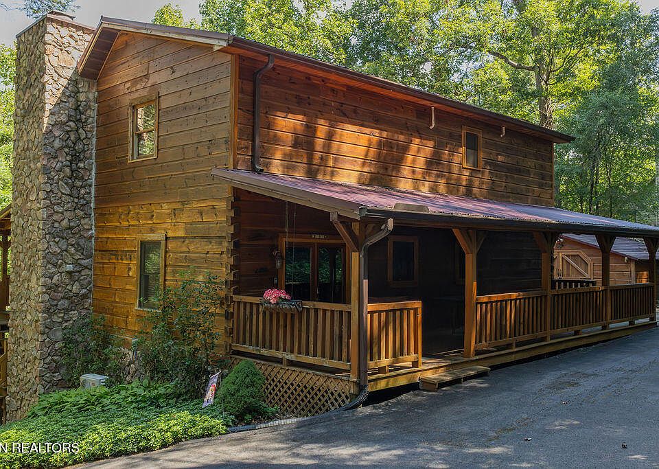So you dream of a cabin in the woods?? Welcome to the Peaceful Side of the Smokies, where this luxury 3- bedroom, 3 - bath awaits. Tucked into a serene wooded setting, this retreat combines mountain charm with modern comfort. Step inside and be captivated by the floor-to ceiling, wood-burning stacked stone fireplace - the heart of the home. The main living area boasts cathedral ceilings with exposed beams, filling the space with warmth and grandeur. The large primary suite offers a true sanctuary with soaring ceilings, while the additional bedrooms provide plenty of space for family and guests. A media room in the finished basement creates the perfect spot for movie nights or game days. Thoughtfully designed and move-in ready, this cabin comes furnished, so you can start enjoying mountain life right away. Whether you are seeking a private getaway or an investment opportunity, this property captures the essence of Smoky Mountain living - rustic elegance, comfort, and peace. Don't miss this chance to own your own cabin in the woods. Schedule your private showing today!!