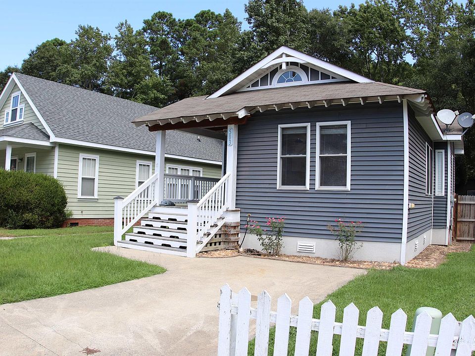 Just five blocks from the Manteo waterfront, this well maintained home works great for those that want that small town atmophere and access to the fun activities, goods and services Manteo is famous for. You'll love the one story floor plan and classic design. Check out the great finishes like solid core six-paneled doors, great countertops, upgraded light fixtures as well as tile and engineered wood floors. Enjoy the vaulted ceilings, skylights and great fenced-in back yard. There's also plenty of room for beach toys in the large shed. Some recent updates include a new HVAC unit and smart thermostat, new river rock patio and grilling area, new fence and exterior paint. Home currently used as a vacation rental/second home but would be great for a primary residence too! No fall rentals at this time so could be easily purchased as a primary residence.