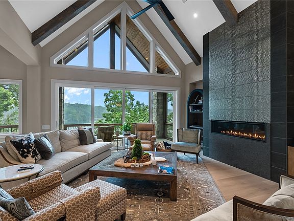 Experience modern lakefront living at its finest in this 2022 AR Homes masterpiece, perfectly situated in The Cliffs at Keowee Falls. Nestled on a private 1.07-acre pie-shaped lot with 347 feet of pristine shoreline, this 4-bedroom, 4.5-bath residence is designed to maximize both comfort and the spectacular surroundings. From the moment you step inside, soaring cathedral ceilings and an open-concept floor plan draw your eye to panoramic lake views framed by expansive windows. Nearly every room in the home overlooks shimmering waters and a protected view across to Lake Keowee’s largest island. The main level features a luxurious primary suite with a steam shower, a dedicated office, and seamless access to two spacious decks with retractable screens—perfect for year-round living and entertaining. The lower level offers an expansive recreation room with a custom wet bar, abundant gathering space, and access to a sprawling patio. From here, a cart path connects both to the main level and to your private dock. Multiple fireplaces add warmth and character, while the outdoor kitchen invites al fresco dining with friends and family. With its unmatched privacy, cathedral ceilings, and exceptional craftsmanship, this home blends timeless elegance with modern functionality—all on one of the most coveted waterfront settings in The Cliffs. Most furnishings and the boat are available for purchase separately and are not included in the list price. A Club Membership at The Cliffs is available for purchase with this property giving you access to all seven communities.