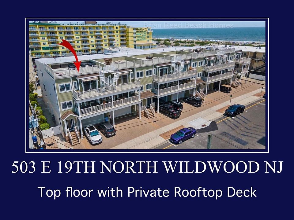 Amazing Opportunity to own a one-of-a-kind Condo just steps to the Beach in North Wildwood. This Exquisite unit has all of the upgraded features the discerning buyer has come to expect. Wide open Floor Plan, High Level Granite countertops, Quiet close cabinetry, Stainless steel appliances, Stone Faced and accented fireplace, tile backsplash and much more. You have a comfortable deck just off of your family room that has a retractable awning to provide some shade on those warm Summer Afternoons. Here is where you will also access your rooftop deck that has enough room to entertain dozens. It's simply magnificent (And is private). Sunbathe, Enjoy the Ocean Views, have cocktails while enjoying the evening ocean breezes. The Choice is yours. The Massive open floor plan allows for the entire family to be together without being on top of each other. There is a large sectional, table with seating for 8 and additional 4 stools at the breakfast bar/counter This room can be described simply as "grand". There is a large Master bedroom suite with double vanity and ample closet space as well as 2 more bedrooms and bath on this floor. The enclosed outside shower is accessed privately through the garage.