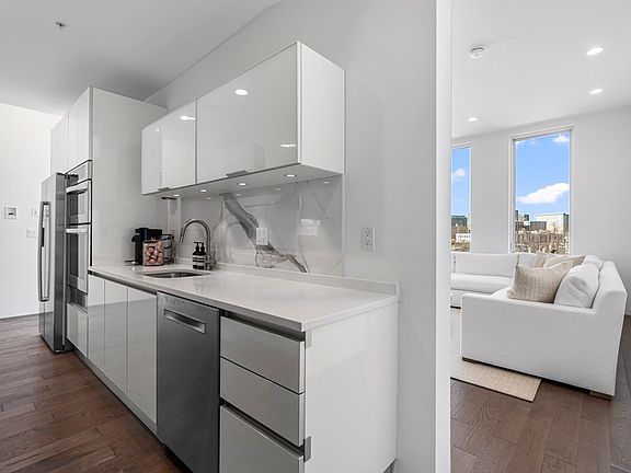 Welcome to an exquisite sanctuary in South Boston, quintessential modern living. This bright, spacious residence features two sizable bedrooms and two elegant bathrooms, including a luxurious primary suite. The living and dining area is beautifully framed by large windows with skyline views, 10-foot ceilings, and a cozy gas fireplace. The chic kitchen boasts stainless steel appliances, ample cabinetry and silestone countertops, perfect for culinary adventures. The crown jewel is the 1400 sq ft private roof deck, an urban oasis for entertaining or enjoying serene moments with breathtaking views. Modern amenities include central air, in-unit laundry, and garage parking for ultimate convenience. Nestled in a vibrant community adjacent to Seaport and the new L St Station Redevelopment, this residence isn't just a home—it's a lifestyle. Discover the perfect blend of elegance, comfort, and location, offering everything you need for an extraordinary urban living experience