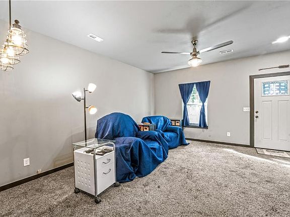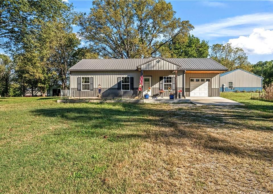 This 5-year-old barndominium has everything you need to feel right at home! It features 3 bedrooms, 2 full bathrooms, a nice size primary suite perfect for that king size bed. The kitchen has beautiful concrete counter tops and the rustic metal ceiling adds to charm of this move in ready home.