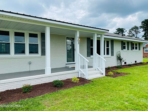 Take a look at this stunning remodeled brick ranch home. It has been updated throughout with new vinyl windows, hardwood floors, and fresh neutral paint colors making it ready for its new owners to move in. The beautiful eat-in kitchen features new cabinetry with soft close doors and drawers, butcher block countertops and a large pantry. Entertain guest with plenty of seating at the spacious island. Kitchen also has a pull out trash can, large drawers for easy storage/access and a built in spice rack. Spend time relaxing in one of the two living spaces that are very spacious, giving the home an open feel. Retreat to your own master en suite with newly renovated bathroom and walk-in closet. A large covered back porch, fenced in backyard and a 16x33 storage building finish off the outside of this great home. The beadboard in the bathrooms and kitchen backsplash are repurposed from a building from downtown Whiteville adding the charm of this amazing home. Don't wait on this one. Call today to schedule your private tour.