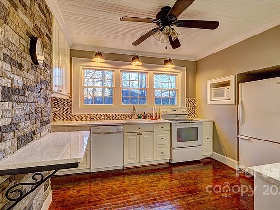 The charming home is located on a large corner lot close to downtown Cherryville and the high school. The home features hardwood floors, a bedroom and a full bath on the main level, and two bedrooms upstairs. The kitchen has a range, refrigerator, microwave, solid surface quartz countertops, rock accent wall, and plenty of storage and cupboards. The home also has a large sunroom on the enclosed porch which also has a washer and dryer (gas). Outside you'll find a nicely landscaped yard, a big front porch, an asphalt driveway, a large carport with a storage area, a storage building, and a nice secondary building currently used as a play house. The roof is approx. 11 years old, the HVAC is 3 years old, the kitchen was updated 6 years ago, most of the windows have been replaced with vinyl windows, and some plumbing and electrical updates.