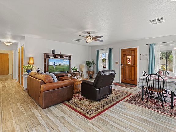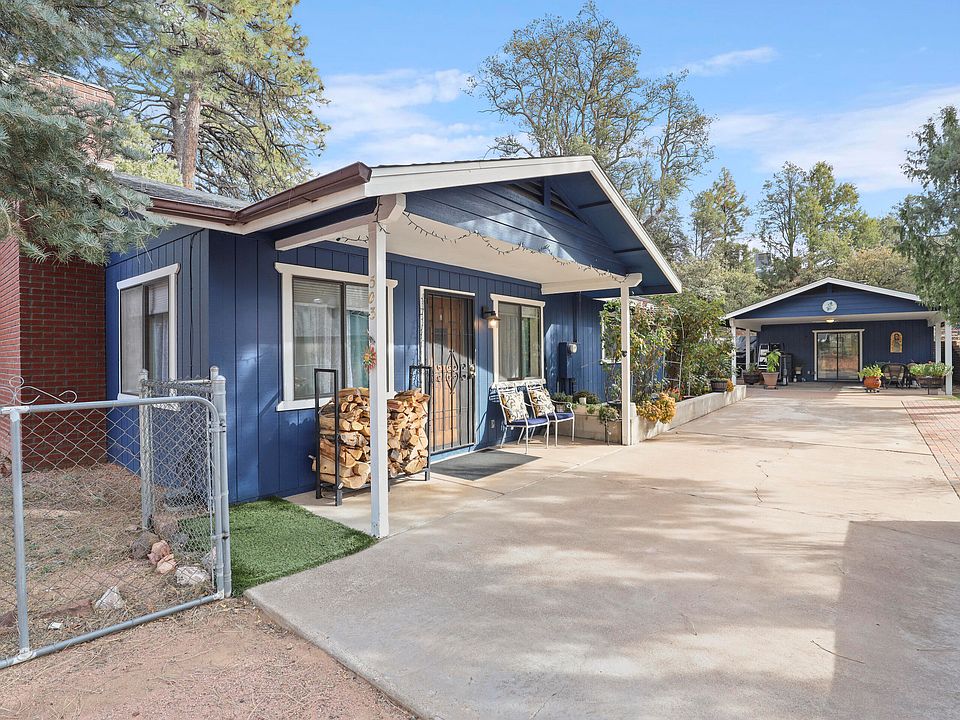 Pristine property in Payson. Beautifully remodeled in 2021-2022, with new kitchen with stainless appliances, wood countertops, breakfast bar and white shaker cabinets. Luxury vinyl plank flooring throughout and wood burning fireplace that keeps the living are and kitchen warm and cozy. Master bedroom is spacious, and the bathroom has tile, walk-in shower. Second bedroom and guest bathroom has a tub and shower. Fenced yard has room for an RV and parking with a bonus building that houses the washer and dryer and plenty of space for storage or workshop. Raised garden beds, roses galore and soaring pine trees make this a special place to call home. New roof in 2022 and house has central heating and cooling.
