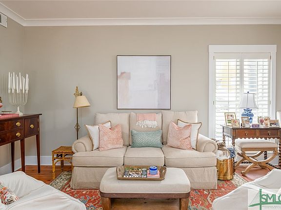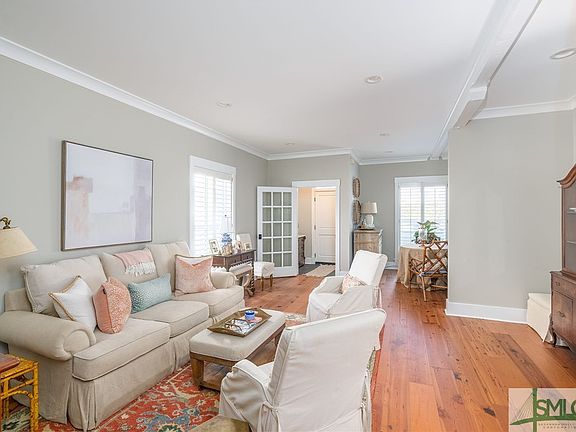The Dietrich Oetjen House, c.1897, is a freestanding 3BD/3.5BA Victorian in the heart of the National Landmark Historic District in Downtown Savannah. Enjoy quintessential downtown living by watching horse-drawn carriages go by from the terrace, spending evenings around the gas firepit on the second-floor deck, or entertaining in your private courtyard. First-floor 1BR/1BA, separately metered apartment offers many options, including use as additional living space, potential for owner-occupied STVR, office, art gallery, & much more. The property underwent extensive restoration and renovation within the last 6 years, including upgraded electrical systems, insulation & vapor barrier under the siding, new windows, & updated kitchen and bathrooms professionally designed by Holmes + Salter Interiors. Additional highlights include a coveted one-car garage, wrought iron details, soapstone countertops, high ceilings, crown molding, and master en-suite with custom walk-in closet & laundry.
